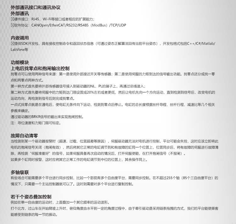 答: 我公司主要從事仿真平臺、六自由度平臺和運(yùn)動平臺控制卡的研發(fā)、生產(chǎn)與銷售,同時承接大型4D/5D/7D影院等工程。專注技術(shù)領(lǐng)先,提升用戶體驗是我們的追求!
