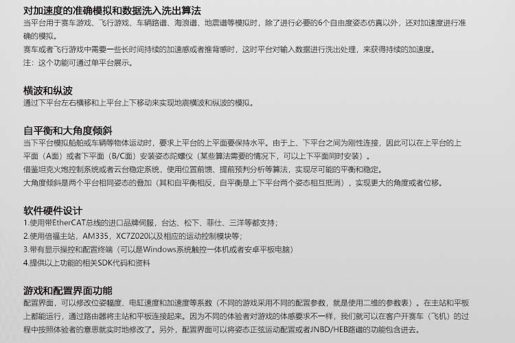 該平臺為三自由度跑步模擬仿真平臺,由南京全控自主研發(fā),精密設(shè)計,進(jìn)口一線品牌組裝。該平臺模擬跑步訓(xùn)練,應(yīng)用于科研研究和模擬體驗,性價比高,歡迎咨詢了解!