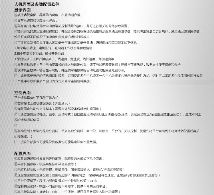 該款六自由度平臺(tái)船舶模擬平臺(tái)是高校定制進(jìn)行船舶實(shí)驗(yàn)使用,參數(shù)要求角度要求精密,因我司長(zhǎng)期從事三/六自由度運(yùn)動(dòng)平臺(tái)的生產(chǎn)及研發(fā),特別是車輛駕駛和航空船舶模擬方面,在國(guó)內(nèi)擁有大量的項(xiàng)目和豐富的經(jīng)驗(yàn),從官網(wǎng)上相關(guān)案例都可以看出。