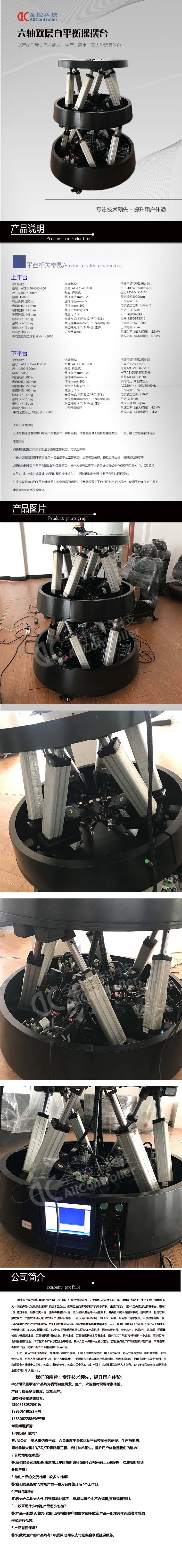 該平臺是我公司根據大學要求定制的一款六自由度雙層自平衡模擬平臺,上下兩個六自由度平臺不斷調整修正平臺姿態,達到自平衡的效果,應用于大學科研研究。