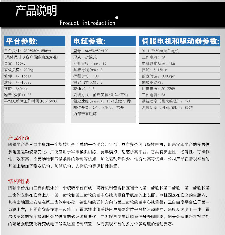 答: 我公司主要從事仿真平臺、六自由度平臺和運動平臺控制卡的研發(fā)、生產與銷售,同時承接大型4D/5D/7D影院等工程。專注技術領先,提升用戶體驗是我們的追求!