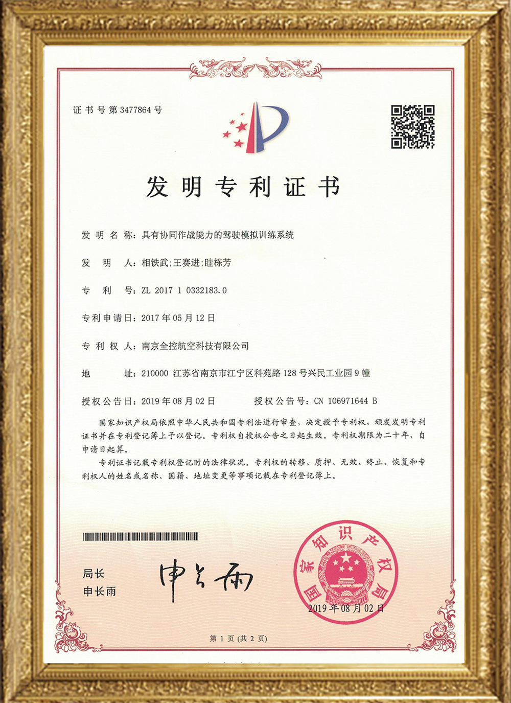 發(fā)明專利證書