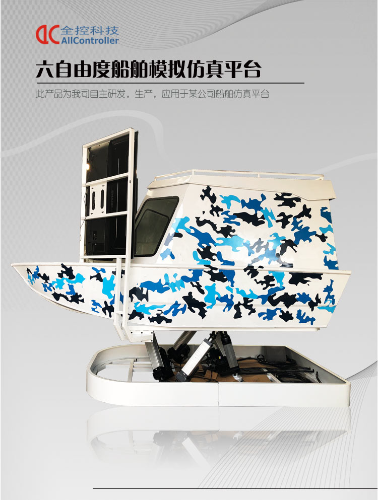 該款六自由度船舶模擬仿真平臺(tái)由南京全控自主研發(fā),包括系列救生船模擬駕駛、快艇模擬駕駛、海上救援訓(xùn)練等。 通過(guò)六自由度平臺(tái)的六軸運(yùn)動(dòng)控制系統(tǒng),可以真實(shí)模擬船舶駕駛體驗(yàn),模擬船舶在海上行駛、波動(dòng)橫波、縱波,加上模擬環(huán)境、VR視覺(jué)以及音響特效的配合,讓人身臨其境,廣泛應(yīng)用于科普研究、模擬測(cè)試中使用。