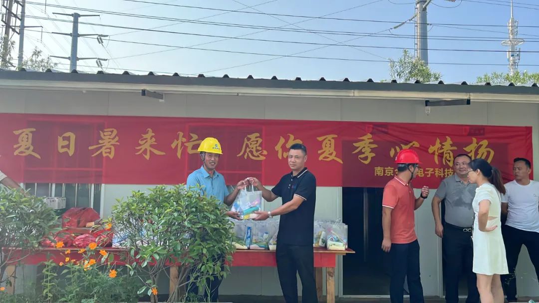 之后領導來到南京全控廠區生產一線,為堅持每天到各個車間工作的一線職工送去夏日清涼大禮包。同時叮囑部門負責人密切關注戶外天氣情況,調整高溫作業時間、為烈日下工作的職工做好健康保障。