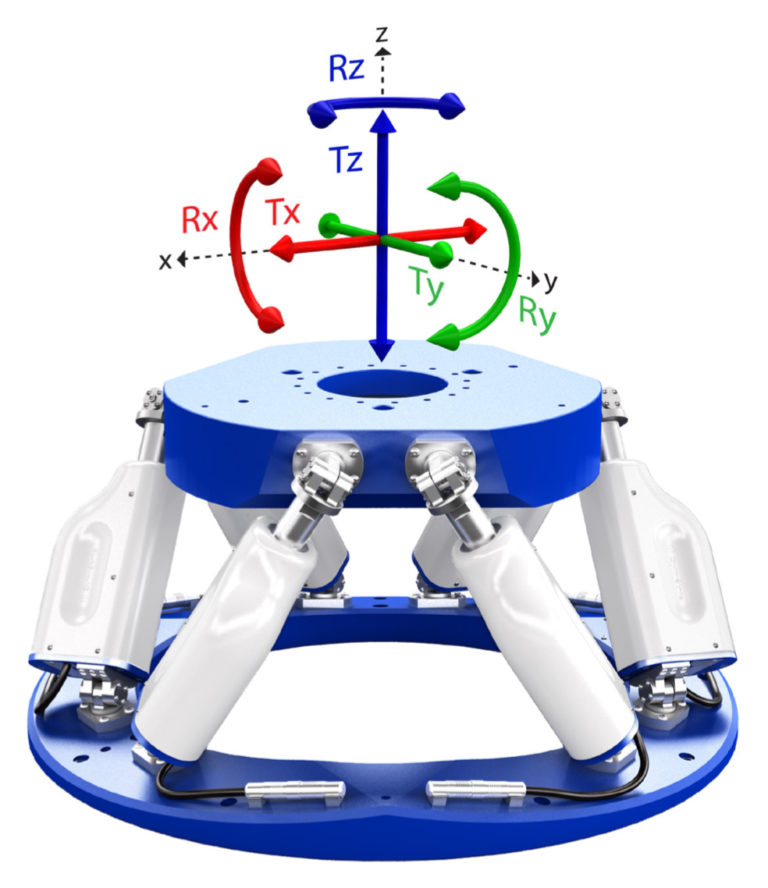 六足機器人在多軸系統中是獨一無二的,因為它們允許用戶定義的所有六個運動軸的旋轉中心或樞軸點。 與串行運動機器人(笛卡爾,SCARA或6軸)相比,它們還具有更高的剛度和承載能力,因為它們的致動器或“支腿”共同作用以支撐負載。并行設計還意味著對每個執行器的誤差進行平均,而不是像在串行機器人中那樣進行累積。