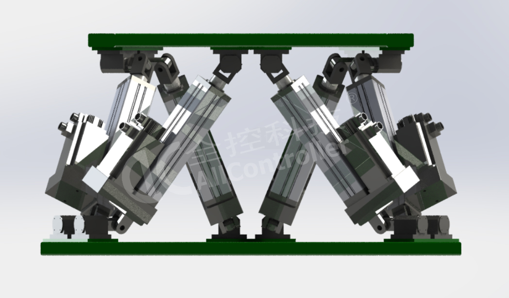 在六自由度平臺(tái)的驅(qū)動(dòng)系統(tǒng)中,伺服電動(dòng)缸省略了中間的能量轉(zhuǎn)換環(huán)節(jié),電機(jī)直接產(chǎn)生力和力矩,運(yùn)動(dòng)過(guò)程確定高效。它具有體積小、響應(yīng)靈敏、使用方便、成本低的優(yōu)點(diǎn),不需要復(fù)雜的管道系統(tǒng)。