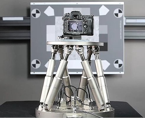攝像機運動的模擬可以通過多軸運動系統(tǒng)進行,對于平滑運動和頻率范圍的最高要求。這種無摩擦系統(tǒng)提供高達幾十赫茲的模擬頻率,具有極低的機械噪音(彎曲而不是滾珠/滾柱軸承)。它以高軌跡精度運行預(yù)定義的運動曲線、正弦曲線和可自由定義的路徑。