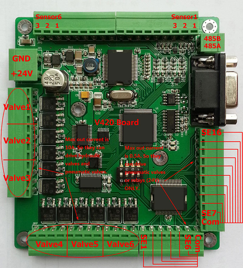 板上具有20路電磁閥的驅動功能,支持3自由度平臺14特效或者6自由度平臺8特效。詳細功能如下圖片: