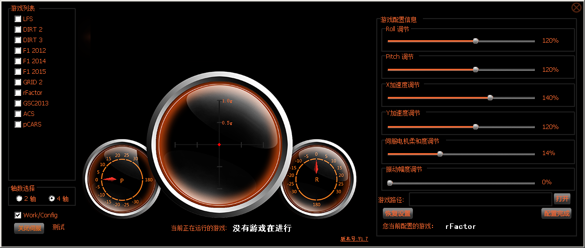 當平臺用于賽車游戲、飛行游戲、車輛路譜、海浪譜、地震譜MathLab等模擬時,除了進行必要的6個自由度的LocLab姿態仿真以外,還通過PowerLab對加速度進行準確的模擬。